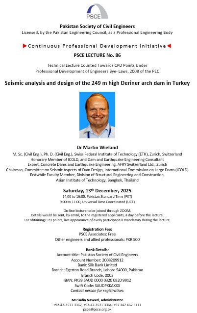 PSCE LECTURE No. 86 | Seismic analysis and design of the 249 m high Deriner arch dam in Turkey November 26, 2025 Read More »